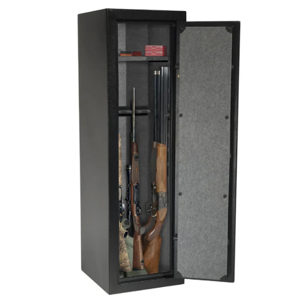 - Construction robuste en acier de 14-gauge : Fabriqué à partir d'acier de 14-gauge, ce coffre-fort garantit une résistance exceptionnelle contre les tentatives d'effraction, assurant ainsi la sécurité de vos armes.